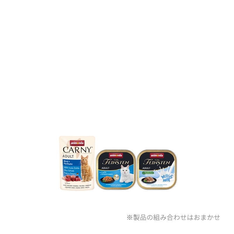 成猫(1歳-6歳まで)向けのコンプリートフード詰め合わせセットです。